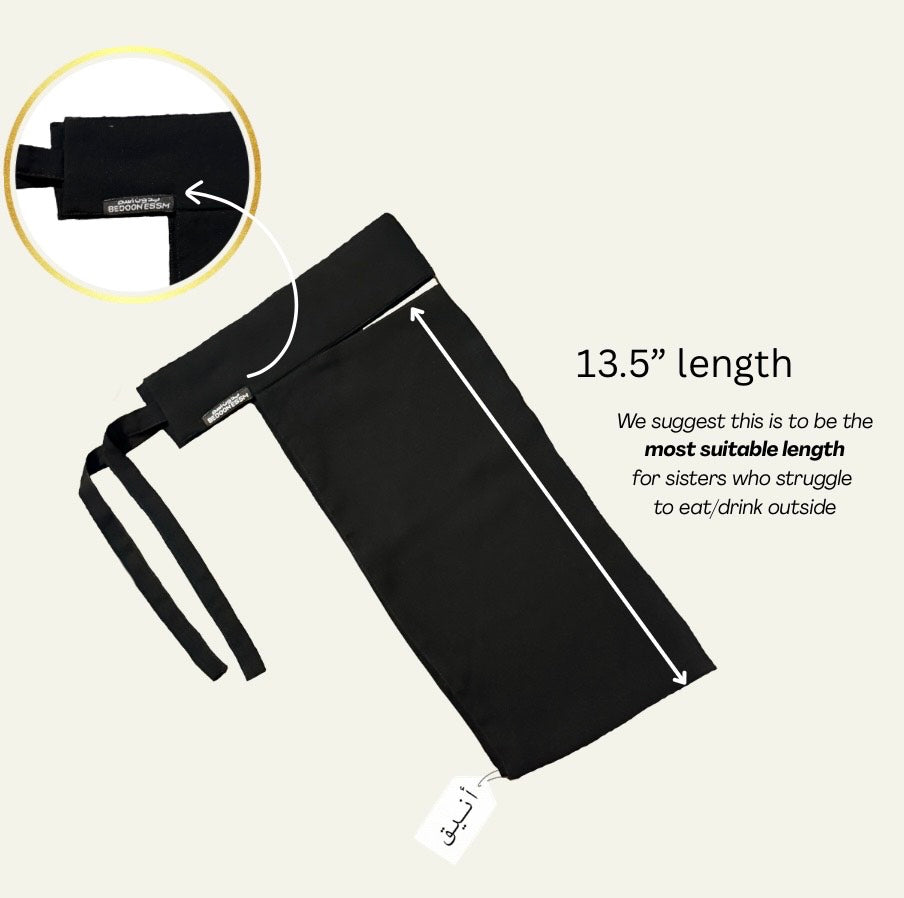 Modesty stitched between each fold, this nose string Niqab is made from 100% Korean Polyester. We Know to keep the heat rashes and suffocation away sis! Sourced from Saudi Arabia's Bedoon Essm, a high-end modest fashion brand, we guarantee the fabric is breathable, lightweight, soft and most importantly: opaque.
